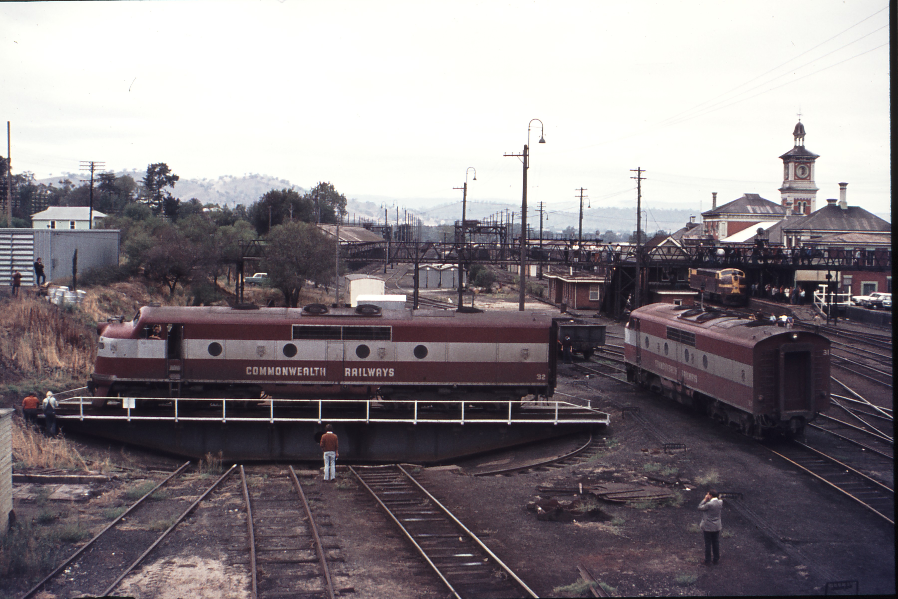 112223: Albury GM 32 on turntable also GM 31 and 4201 leading up Intercapital Daylight